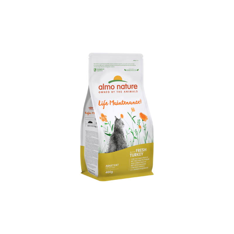Ingredients: turkey 44% (fresh turkey 26%, dried turkey 18%), corn*, rice, brown rice flour, hydrolysed animal proteins, chicken fat, dried beef 1.3%, minerals, mannanoligosaccharides 0.1%, inulin from chicory - source of FOS - 0.1%.