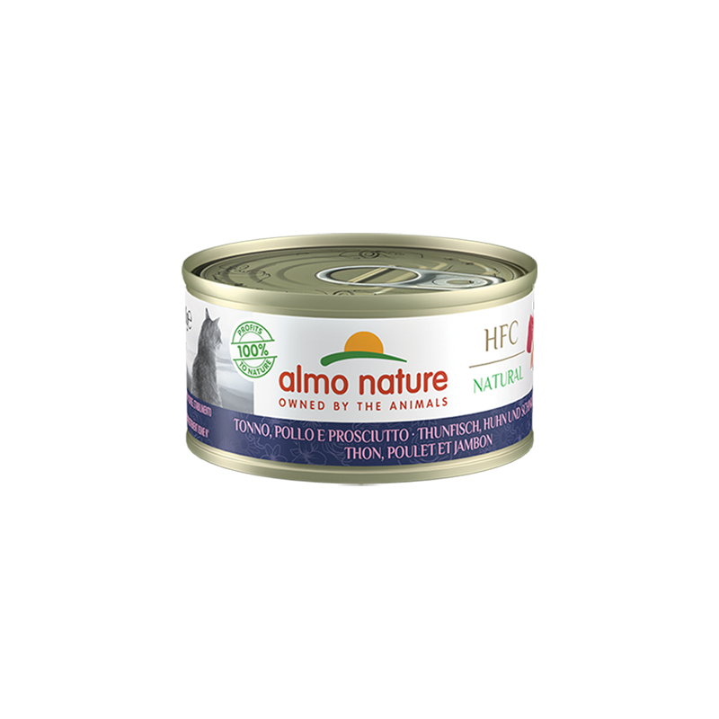Almo Nature HFC recipes are made from ingredients originally suitable for human consumption, but used instead in our cat food. The origin of the ingredients can be easily traced and identified, guaranteeing that the recipes in this range provide a natural and high quality supply of animal protein. This maintains the nutrient balance at the highest level and stimulates mental well-being. HFC Natural recipes - our most famous product and original recipe - are simply cooked in the product's own broth, helping to maintain cats' natural hydration. The recipes are free from food colourings and chemical preservatives. Gluten-free.