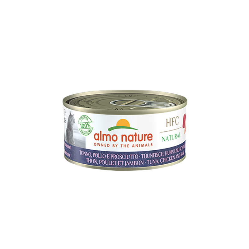 Almo Nature HFC recipes are made from ingredients that were originally suitable for human consumption but are instead used in our cat food. The origin of the ingredients can be easily traced and identified, guaranteeing a natural and high-quality supply of animal proteins. It maintains the highest level of nutrient balance and stimulates mental well-being. HFC Natural recipes, our most famous product and original recipe, are simply prepared in the broth of the same product, which helps maintain the natural hydration of cats. The recipes do not contain food colorings or chemical preservatives. Gluten-free.