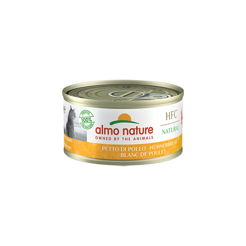 Almo Nature HFC receptes ir izgatavotas no sastāvdaļām, kas sākotnēji ir piemērotas lietošanai cilvēku pārtikā, bet tā vietā tiek izmantotas mūsu kaķu barībā. Sastāvdaļu izcelsmi var viegli izsekot un identificēt, garantējot, ka šī diapazona receptes nodrošina dabisku un kvalitatīvu dzīvnieku olbaltumvielu piegādi. Tas uztur uzturvielu līdzsvaru visaugstākajā līmenī un stimulē garīgo labsajūtu. HFC Natural receptes - mūsu slavenākais produkts un oriģinālā recepte - tiek vienkārši pagatavotas paša produkta buljonā, kas palīdz uzturēt kaķu dabisko hidratāciju. Receptēs nav pārtikas krāsvielu un ķīmisku konservantu. Nesatur glutēnu.