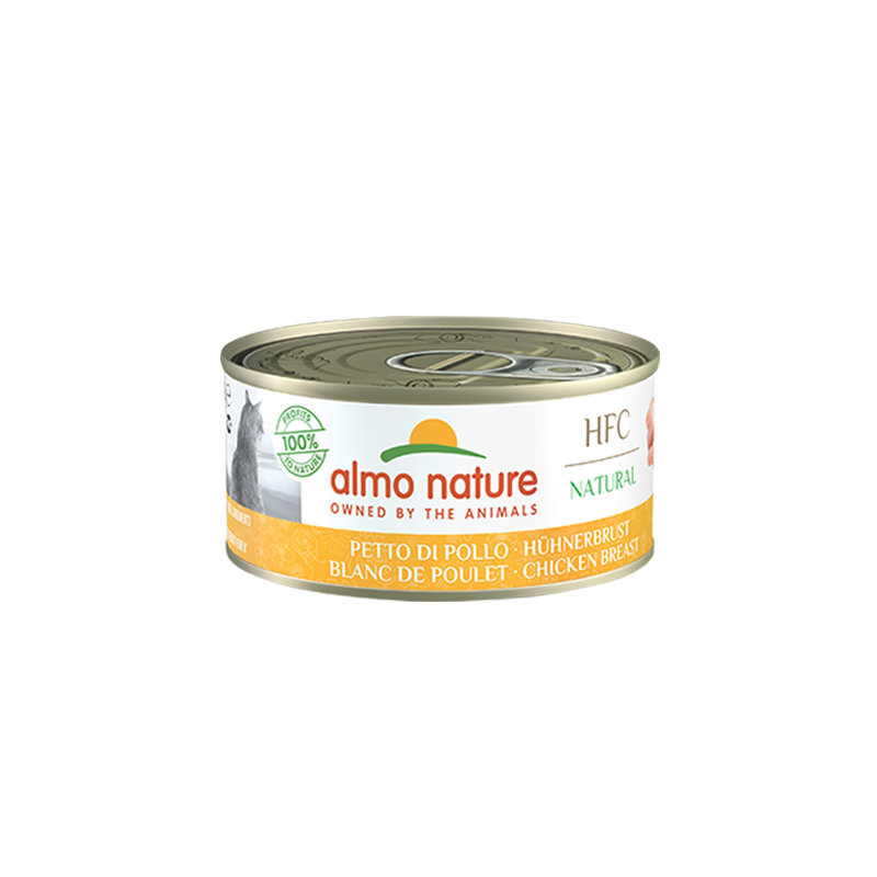 Almo Nature HFC receptes ir izgatavotas no sastāvdaļām, kas sākotnēji ir piemērotas lietošanai cilvēku pārtikā, bet tā vietā tiek izmantotas mūsu kaķu barībā. Sastāvdaļu izcelsmi var viegli izsekot un identificēt, garantējot, ka šī diapazona receptes nodrošina dabisku un kvalitatīvu dzīvnieku olbaltumvielu piegādi. Tas uztur uzturvielu līdzsvaru visaugstākajā līmenī un stimulē garīgo labsajūtu. HFC Natural receptes - mūsu slavenākais produkts un oriģinālā recepte - tiek vienkārši pagatavotas paša produkta buljonā, kas palīdz uzturēt kaķu dabisko hidratāciju. Receptēs nav pārtikas krāsvielu un ķīmisku konservantu. Nesatur glutēnu.