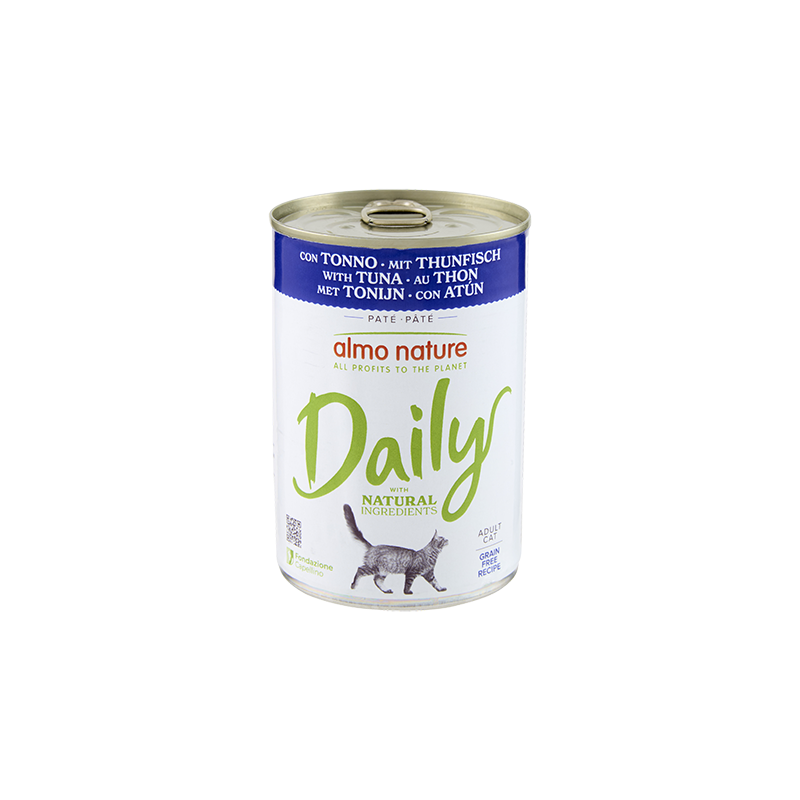 DAILY receptai yra pagaminti iš ingredientų, tinkamų gyvūnų maistui: visavertis maistas, skirtas dideliam suaugusių kačių skaičiui, dėka jų ingredientų įvairovės (mėsai ir subproduktams). Kasdieniai receptai garantuoja sveiką ir kokybišką dietą už prieinamą kainą! Visi asortimento produktai nepalieka dirbtinių konservantų ir dažiklių. Tiek skardinės pakuotė, tiek popierinė etiketė yra perdirbamos, o tinkamai utilizavus, galima jas naudoti pakartotinai, kad gautumėte daugiau pakuočių. Kasdieniai – be grūdų minkštųjų paštetų receptai su skaniais gabalėliais – yra prieinami 400 g skardinėse. Almo Nature yra aktyvistų naminių gyvūnų maisto prekės ženklas, kuris visiškai priklauso Fondazione Capellino.