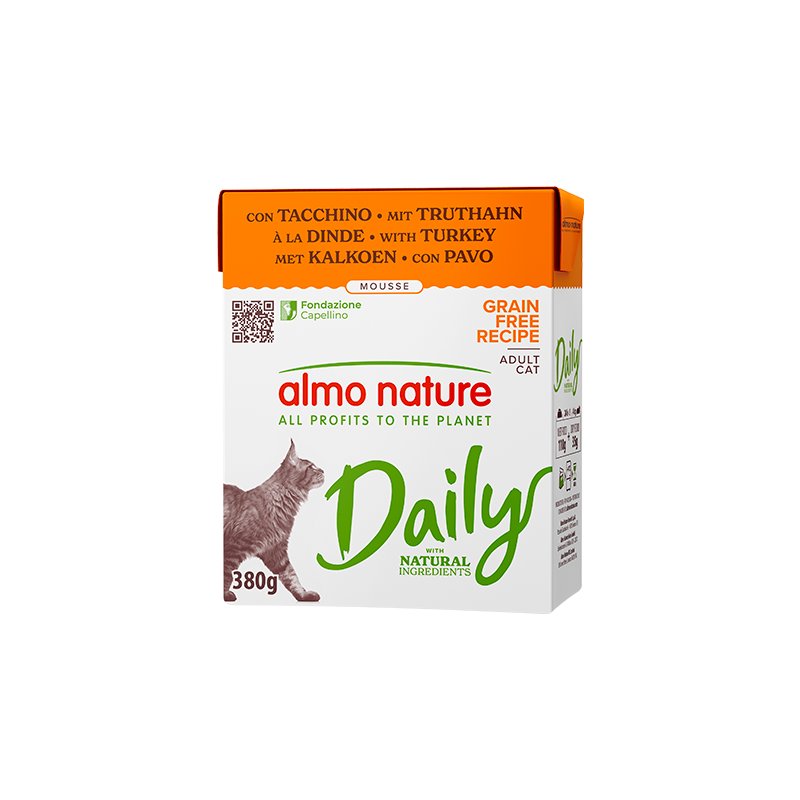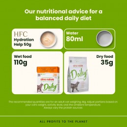 Daily receptes ir izgatavotas no sarkanās gaļas, baltās gaļas, zivīm, olām, dārzeņiem un rīsiem, kas piemēroti mājdzīvnieku barībai. Viss klāsts nesatur mākslīgas krāsvielas un konservantus. Ikdienas ēdienkartes receptes ļauj nodrošināt maltītes ar Almo Nature kvalitātes garantiju par vēl ērtāku cenu!