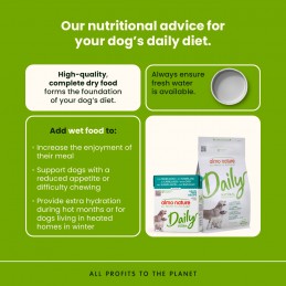 Daily receptes suņiem ir sagatavotas no sastāvdaļām, kas piemērotas tikai mājdzīvnieku barībai, bez ķīmiskiem konservantiem vai pārtikas krāsvielām. Ikdienas receptes nodrošina mūsu Almo Nature kvalitātes garantiju, lai nodrošinātu pilnvērtīgu uzturu jūsu sunim par vēl ērtāku cenu!